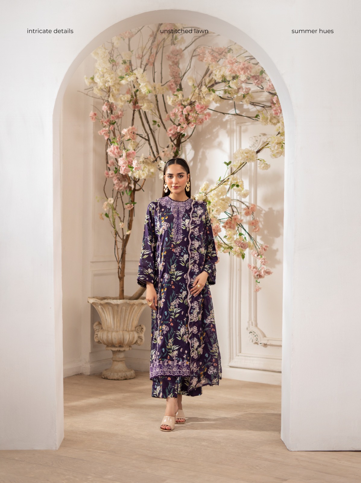 Midnight Plum Embroidered Digital Printed Lawn 3‑Piece Suit