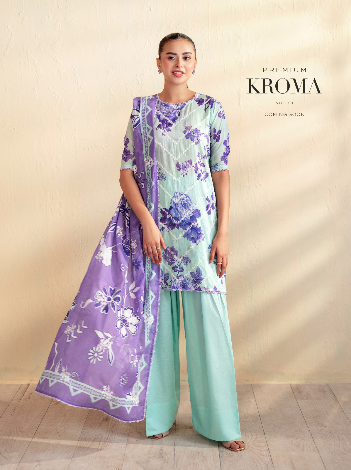 - Premium Kroma Vol. 01 – 3‑piece unstitched lawn suit